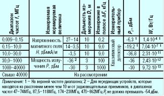 Нежелательные излучения измеряют детектором с усреднением и квазипиковым детектором. При этом существует однозначное соответствие между величинами, измеряемыми приборами различного типа. В табл.3.4 [3] приведены сравнительные уровни нежелательных излучений, нормируемых в разных странах для диапазонов частот выше 30 МГц.