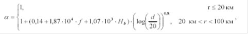 В формулах Хаты рассматривается несколько случаев, в зависимости от расстояния rEGSM, в данной задаче целесообразно рассматривать только худший для ЭМС случай, когда rEGSM ≥ 0,1 км (большее расстояние - большие потери).