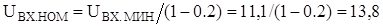 Номинальное и максимальное значения напряжения на входе стабилизатора с учетом колебания питающей сети ±20%