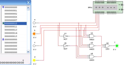 Вывод: На рисунках наглядно видно как данная схема преобразует значения генератора слов в необходимую нам функцию F : 0001010111. Поставленная задача выполнена.