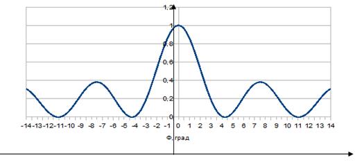 Ширина главного лепестка по уровню 0, 7 составляет 4°.