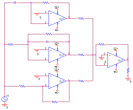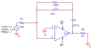Произведем расчет. В нашем случае дифференциатор должен иметь смещение по фазе на выходе и ослабление сигнала в 10 раз. Схема имеет следующий вид (рис 2.6):