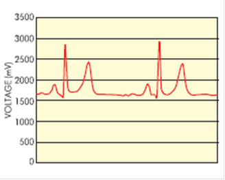 На рис. 11 показана кривая, записанная с отведения I (стандартное отведение по Эйнтховену). Видно, что получен хороший результат, несмотря на простоту аппаратной части нашего прибора.