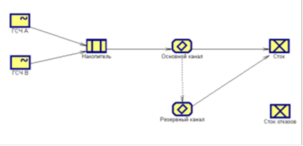 С помощью среды имитационного моделирования систем массового обслуживания реализована модель.