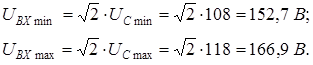 Как и в любом сетевом блоке питания входной конденсатор выбирается исходя из компромисса между габаритами и пульсациями на нем. Как правило, пульсациями на частоте преобразования пренебрегают, поскольку емкость входного конденсатора заведомо значительно больше необходимой для подавления высокочастотных пульсаций. Рассчитаем необходимую емкость конденсатора, чтобы получить некое минимальное постоянное напряжение UРАБ min при минимальном постоянном напряжении сети UВХ min. Для этого определим входное напряжение преобразователя: